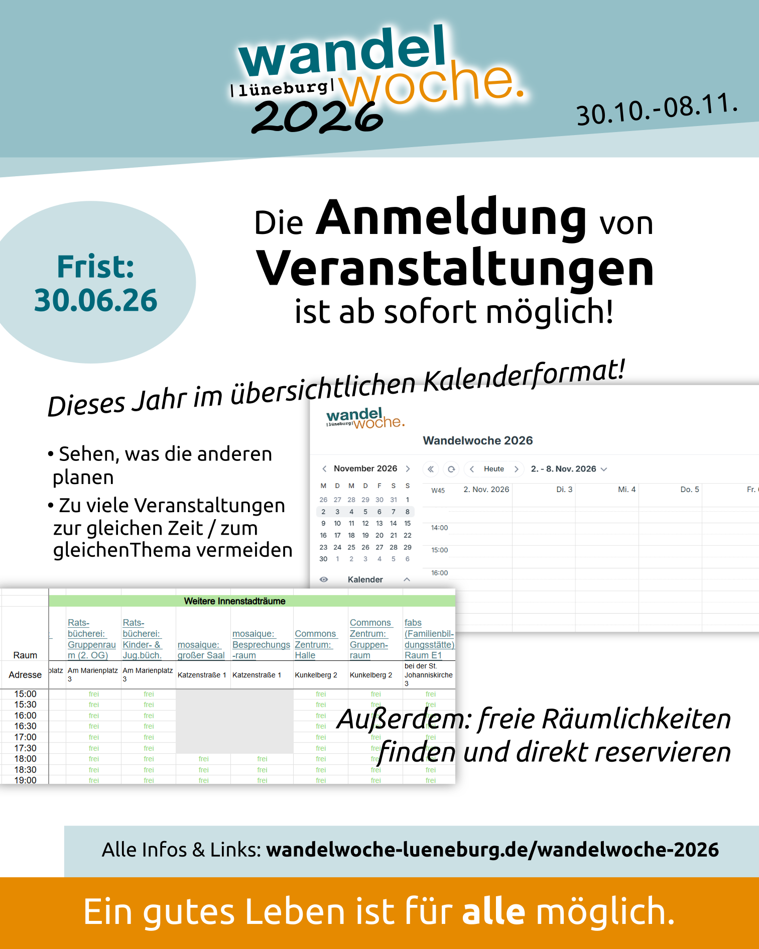 Alle Infos und Links findet ihr hier: https://wandelwoche-lueneburg.de/wandelwoche-2026/